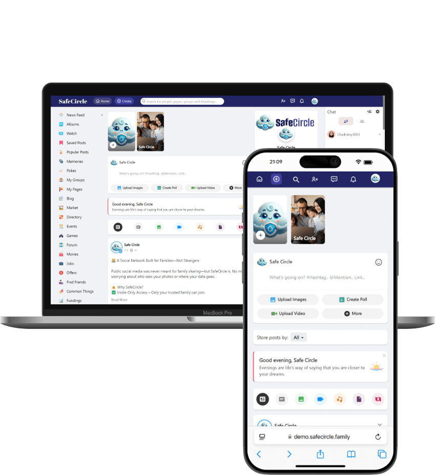 SafeCircle was built with one purpose: to create a safe and private space for families to connect without the risks of public social media.
